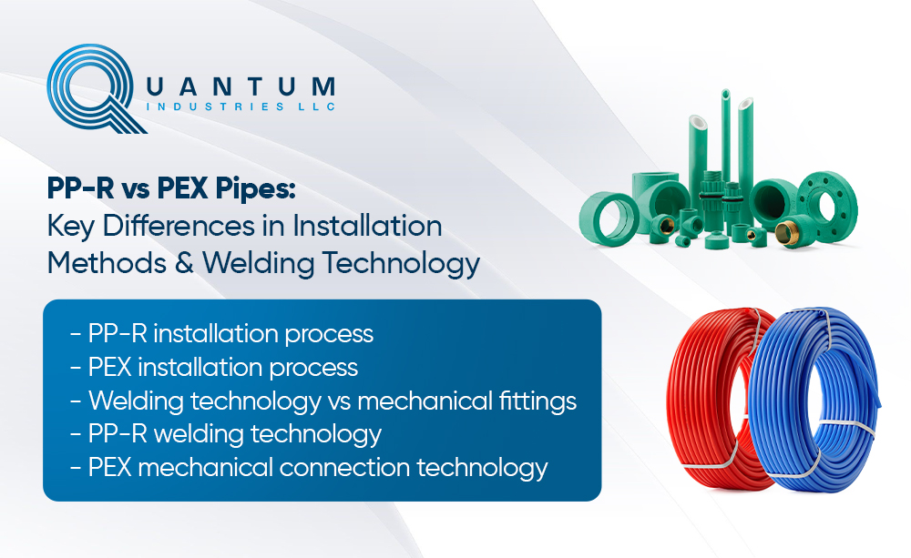 Companies like Quantum Industries rely on the differences between PP-R and PEX to provide effective piping solutions in this era of advanced infrastructure delivery systems. The following post discusses the primary differences between PP-R and PEX from a standpoint of installation methods and welding methods.